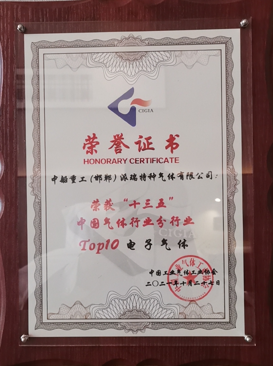 中國(guó)船舶集團(tuán)旗下七一八所所屬派瑞特氣公司,近日榮獲中國(guó)工業(yè)氣體工業(yè)協(xié)會(huì)評(píng)選的“十三五”中國(guó)氣體行業(yè)分行業(yè)電子氣體10強(qiáng)、“十三五”中國(guó)氣體行業(yè)50強(qiáng)企業(yè)榮譽(yù)稱號(hào),以及2021年氣體行業(yè)專利獎(jiǎng)金獎(jiǎng)。