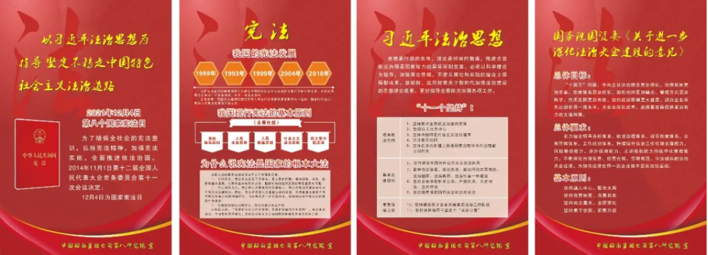▲ 大船集團、廣船國際、外高橋造船、風帆公司、九江公司、前衛科技、汾西重工、深圳研究院、七二六所等單位通過內部報刊、宣傳展板、海報、電子屏幕、OA平臺等開展法治宣傳;中國海裝、中船貿易、上海公司、重慶公司、武漢重工、綜合院等單位充分運用微信公眾平臺、微信群等互聯網媒介對憲法、民法典等進行宣傳解讀。