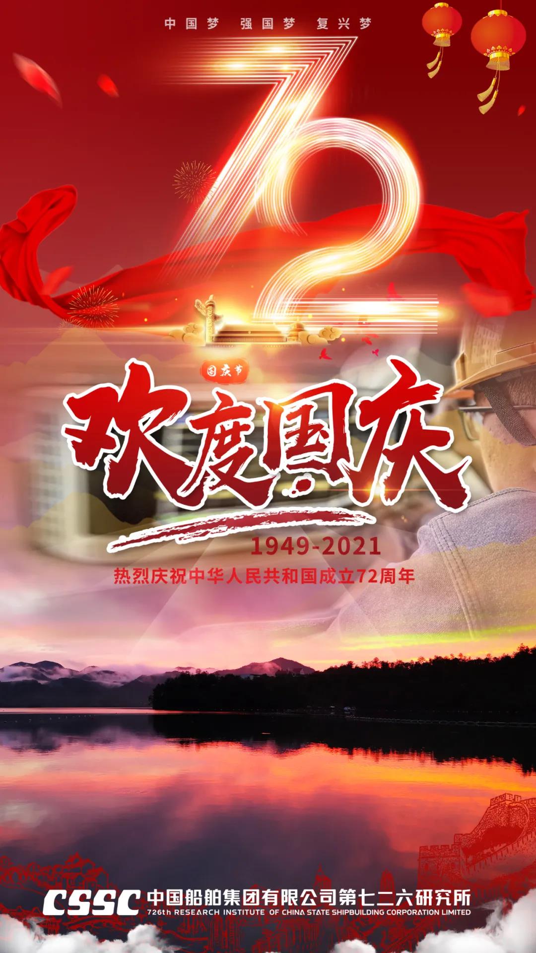 72年篳路藍(lán)縷,72年風(fēng)雨兼程,正值建黨百年之際,恰逢新中國(guó)72周年華誕,中國(guó)船舶七二六所為祖國(guó)獻(xiàn)上最真摯的祝福!祝福偉大祖國(guó)繁榮昌盛!七二六人將繼續(xù)用智慧和汗水譜寫水聲華章,用創(chuàng)新和拼搏開拓新時(shí)代新征程,為建設(shè)海洋強(qiáng)國(guó)貢獻(xiàn)磅礴力量!