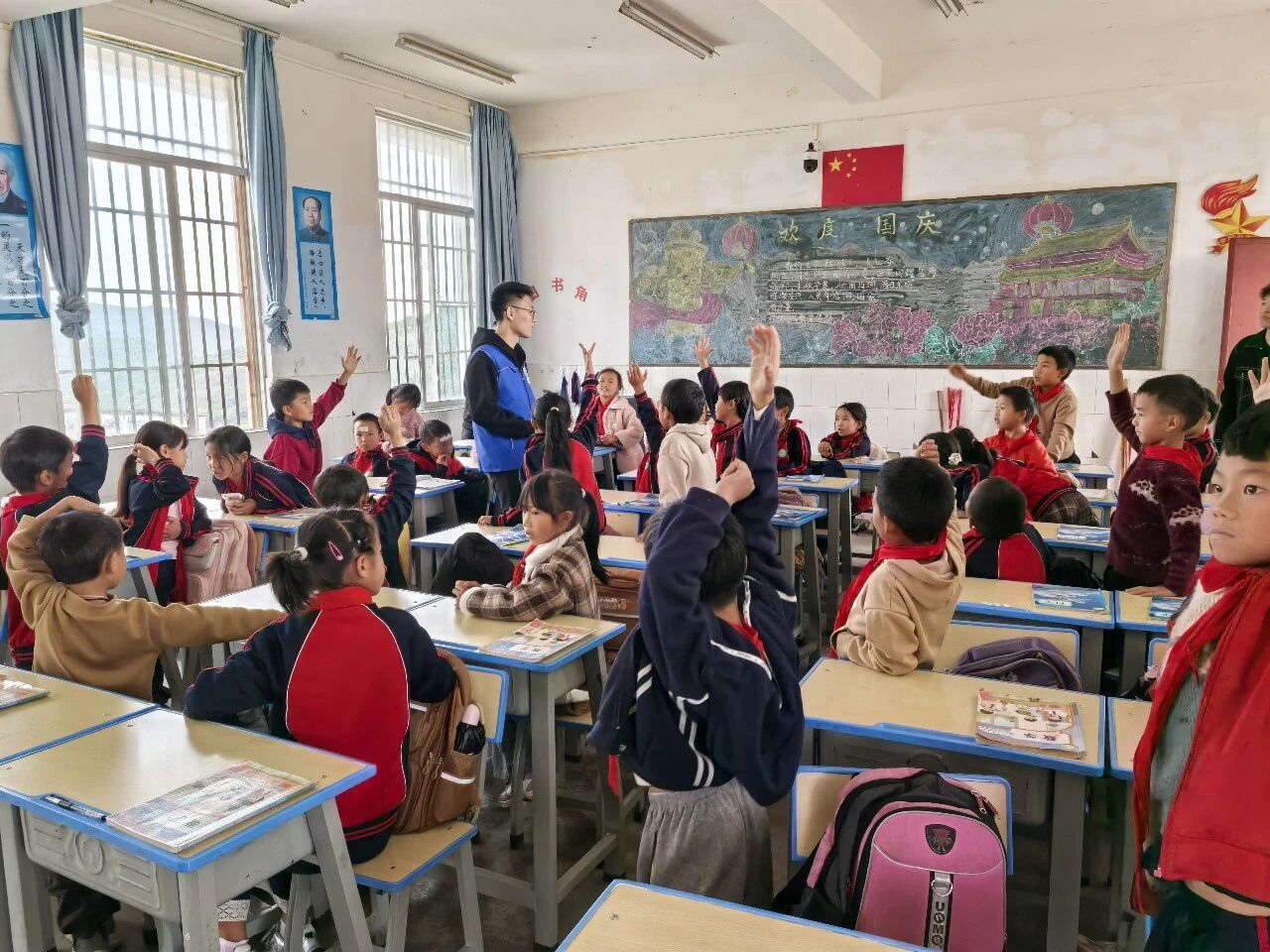 ? 在云南丘北,七二五所團委、七〇四所團委、七〇一所團委和前衛科技團委共同組成的“愛在深藍”志愿服務隊多次深入當地小學,不僅捐贈物資,更帶來“神奇的材料”等主題科普盛宴,開展科普課程38場次,惠及學生1600余名。