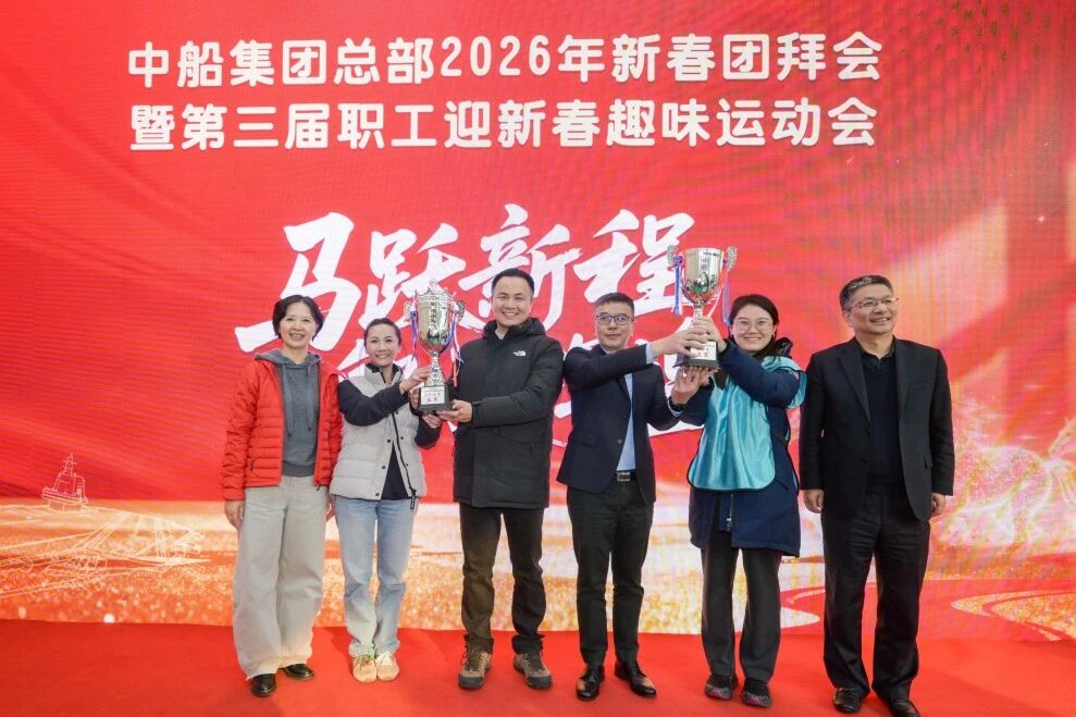 團拜會現場,集團公司領導為運動會獲獎隊伍代表頒獎。集團總部各部門和二級管理單位通過視頻集體“云拜年”,感受屬于中船人的龍馬精神與團圓暖意,充分展現了中船人在“十五五”開局之年,一馬當先開新局、矢志奮進建新功的昂揚風貌,凝聚起高質量建設世界一流船舶集團的磅礴力量。