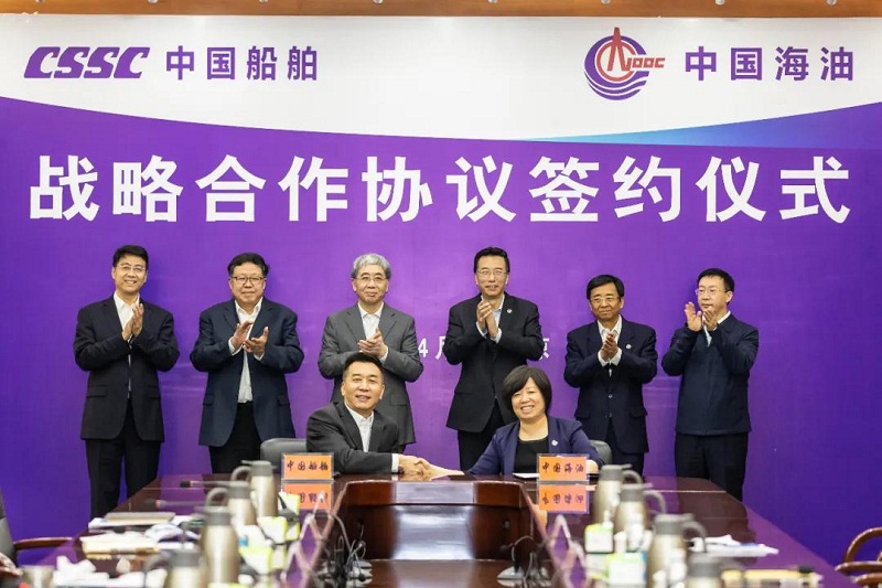 ????根據(jù)協(xié)議,中國船舶集團(tuán)和中國海油將建立戰(zhàn)略合作伙伴關(guān)系,充分發(fā)揮在各自領(lǐng)域的優(yōu)勢,在海洋油氣勘探開發(fā)業(yè)務(wù)及相關(guān)裝備、油氣運輸業(yè)務(wù)及相關(guān)裝備、綠色清潔能源拓展、裝備科研開發(fā)等領(lǐng)域開展全方位合作。