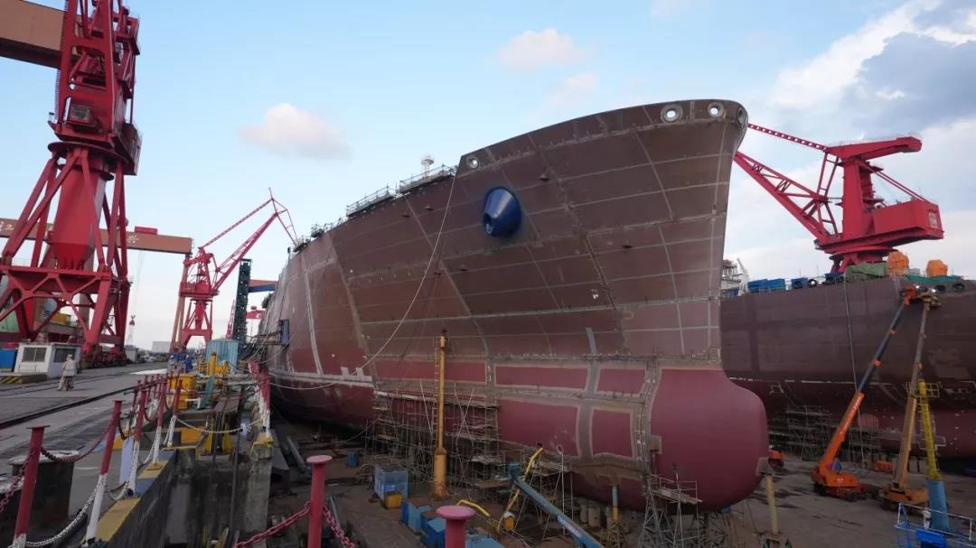 主甲板貫通:17.4萬方LNG項目首制船塢內(nèi)生產(chǎn)有序推進