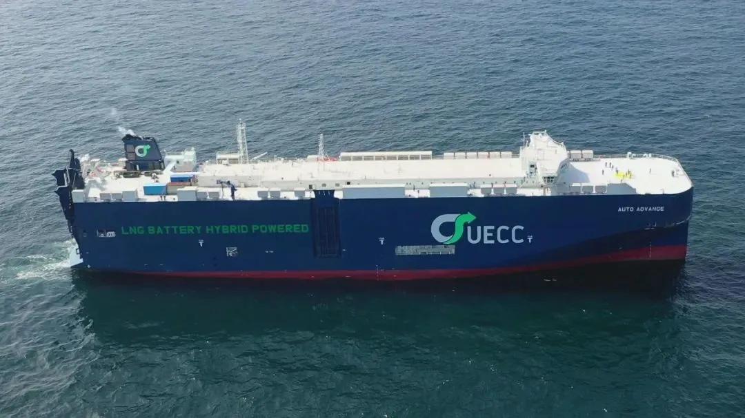 “AUTO ADVANCE”號是江南造船為挪威UECC公司建造的3600車汽車運輸船(PCTC)首制船,于今年11月26日交付。該船由上海船院設計,是世界上首艘LNG雙燃料+電池混合動力+EMS能源管控系統的汽車運輸船。