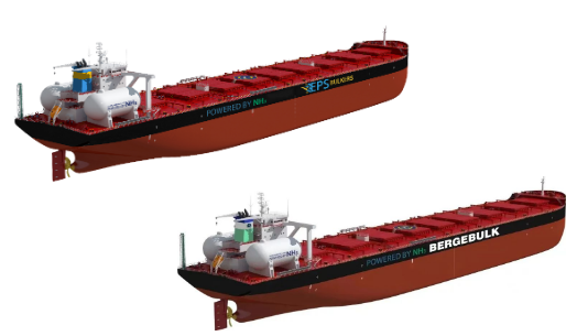 2月28日,北海造船聯(lián)合中船貿(mào)易與新加坡東太平洋航運(yùn)公司(EPS)新簽4艘21萬噸Ammonia DF/DF Ready散貨船建造合同;2月29日,北海造船再次聯(lián)合中船貿(mào)易,與新加坡百國山航運(yùn)公司(Berge Bulk)成功簽署2艘21萬噸Ammonia Ready散貨船建造合同。