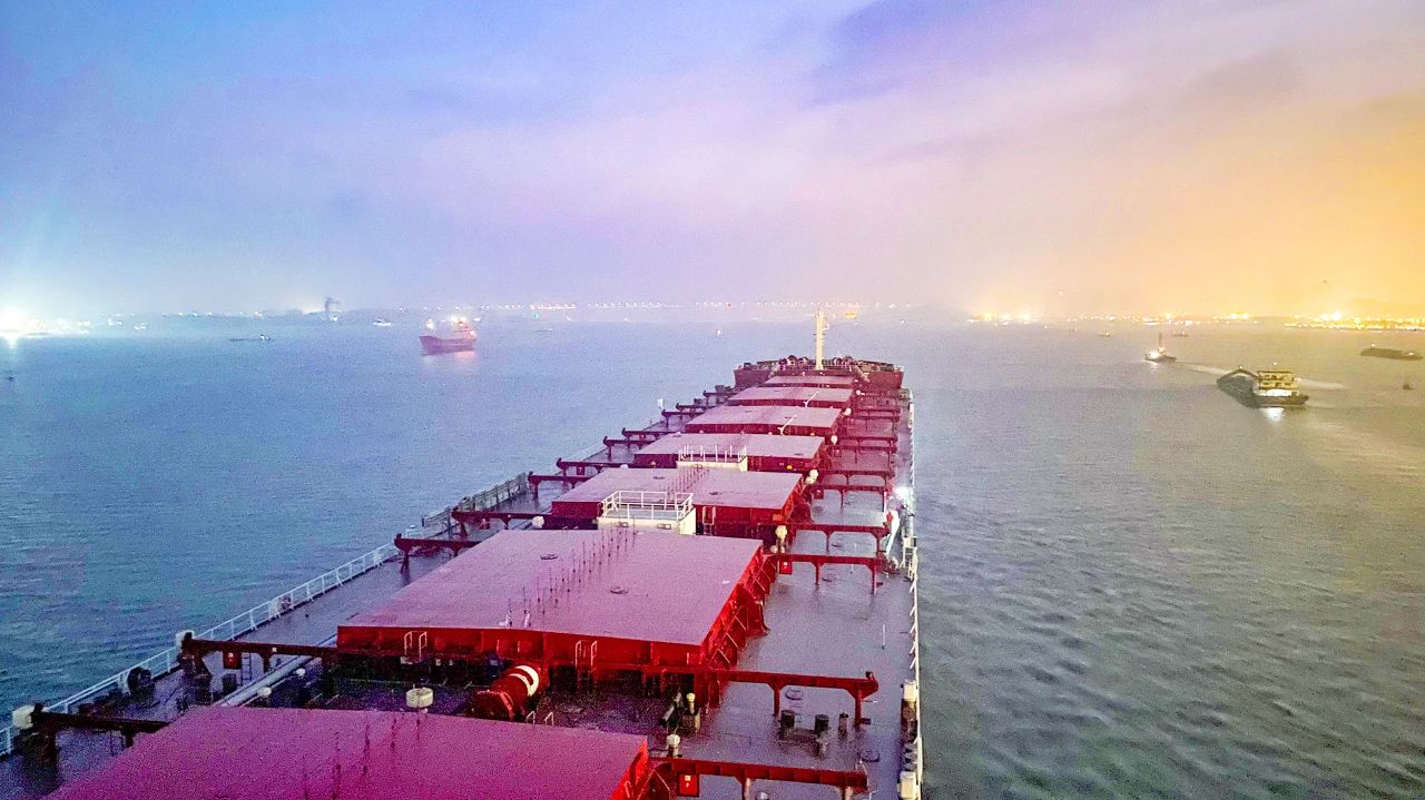 84500噸多用途船總長225米,該型船適應(yīng)性強、裝載效率高,能運輸紙漿、集裝箱、新能源汽車等多種貨品。同時,該型船環(huán)保性能優(yōu)越,擁有高壓SCR系統(tǒng)和開式脫硫塔等環(huán)保設(shè)備,經(jīng)濟性突出。