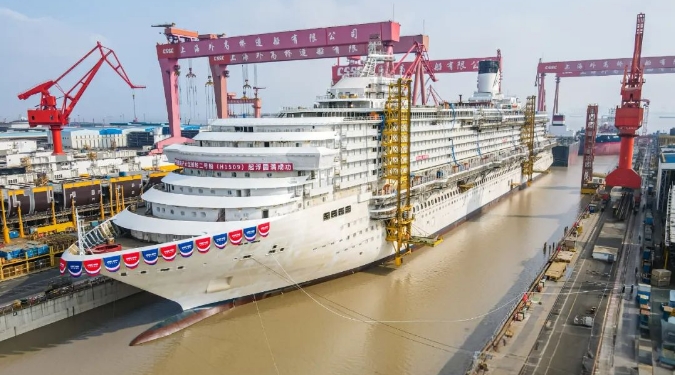 “愛達·花城號”由中船集團旗下外高橋造船于2022年8月開工建造,去年4月入塢搭載,今年1月實現全船貫通。“愛達·花城號”長341米、寬37.2米、約14.19萬總噸,相比首艘國產大型郵輪“愛達·魔都號”體量更大、建造物量更多,對設計建造管理能力提出了更高要求。目前,“愛達·花城號”整體建造進度已超過70%,比“愛達·魔都號”起浮時總進度提前12%,結構總裝周期縮短至9個月,標志著我國大型郵輪建造技術邁上了新臺階。