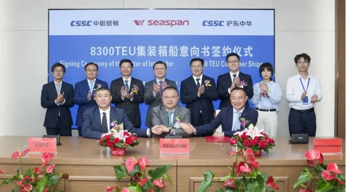 滬東中華成功簽訂批量化8300TEU級集裝箱船和1艘18600立方米加注船的意向書。