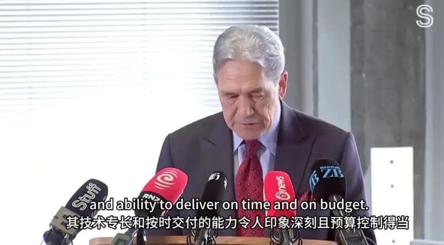 新西蘭外交部兼鐵道部部長Winston Peters(溫斯頓·彼得斯)、新西蘭FHL公司董事長Chris McKenzie(克里斯·麥肯齊)、中船集團副總經理彭原璞出席簽約儀式并致辭,新西蘭駐華大使Jonathan Austin(喬·文博)、駐廣州總領事Michael Zhang(張典)等出席簽約儀式。