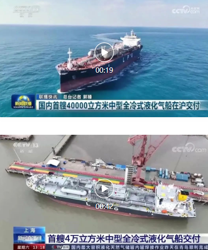 3月31日,中國船舶集團旗下江南造船聯(lián)合中船貿(mào)易為日本KUMIAI公司建造的40000立方米中型全冷式液化氣船(MGC)“MIRAI”號順利交付,中央電視臺《新聞聯(lián)播》 《新聞直播間》對此進行了報道。