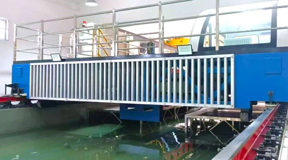 中山大學“拖曳水池建造” 項目包含了拖曳水池拖車、軌道系統、造消波系統、造風系統等關鍵試驗設備。拖車實現從0.02米/秒到8米/秒的高精度、高速比調速,滿足拖曳水池流速儀標定和船舶試驗的雙重需求;造風系統實現了風譜模擬能力。