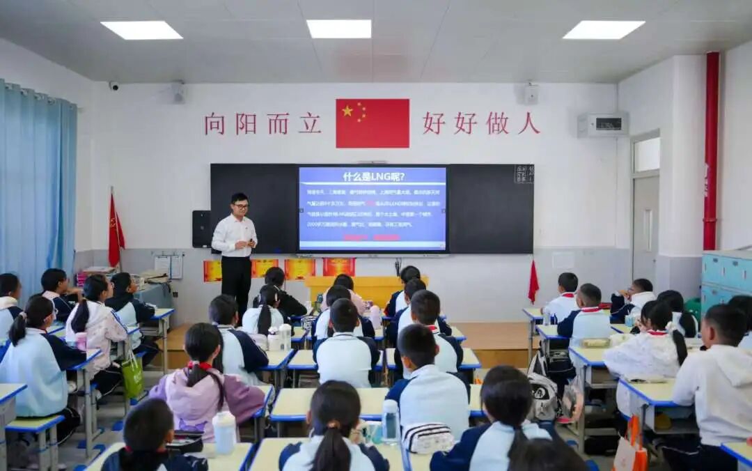 同時(shí),志愿者為94名小學(xué)生帶去3堂科普課程,回顧人民海軍發(fā)展歷程,厚植孩子們的愛國情懷;精講民用船舶種類,點(diǎn)亮孩子們的探索精神;揭秘LNG船關(guān)鍵技術(shù),展現(xiàn)中國“智”造實(shí)力,增強(qiáng)孩子們的自豪之感。課程中,志愿者們深入淺出講解,學(xué)生們?nèi)褙炞W(xué)習(xí),同學(xué)們感受到中國船舶“智領(lǐng)深藍(lán)”的魅力,紛紛提問:護(hù)衛(wèi)艦一次能航行多遠(yuǎn)?一艘LNG船能載多少噸液化天然氣?“海上帶貨王”到底有多大?……孩子們展現(xiàn)出對國防和海洋的濃厚興趣。